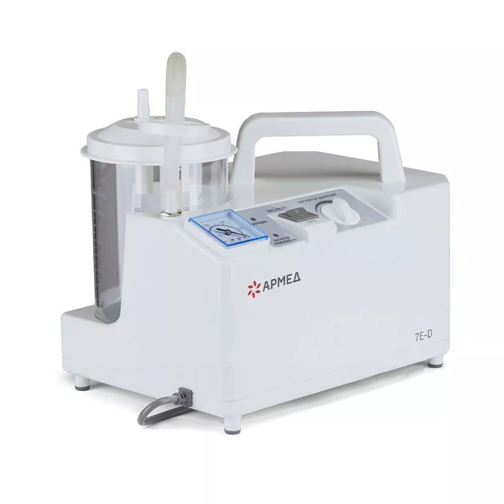 Отсасыватель Армед 7E-D может работать от сети 220 В, встроенного аккумулятора и автомобильного прикуривателя 12 В. Это позволяет использовать его в стационаре, автомобилях скорой помощи и в экстренных ситуациях. Время работы от аккумулятора составляет 30 минут.