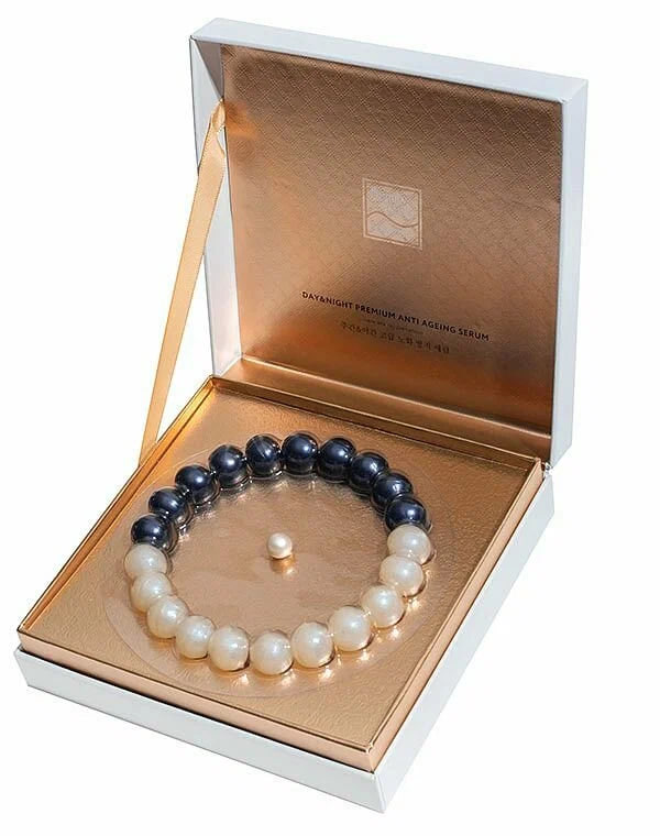Увлажняющая сыворотка «Beauty Pearls» поделена на две фазы — дневная и ночная. Капсулы имеют свой уникальный состав, в зависимости от цвета содержат свой набор активов. Дневные (белые) капсулы обогащены антиоксидантами, увлажняющими и питательными компонентами. Ночные (черные) капсулы обогащены гиалуроновой кислотой, ретинолом, коллагеном, растительными маслами.