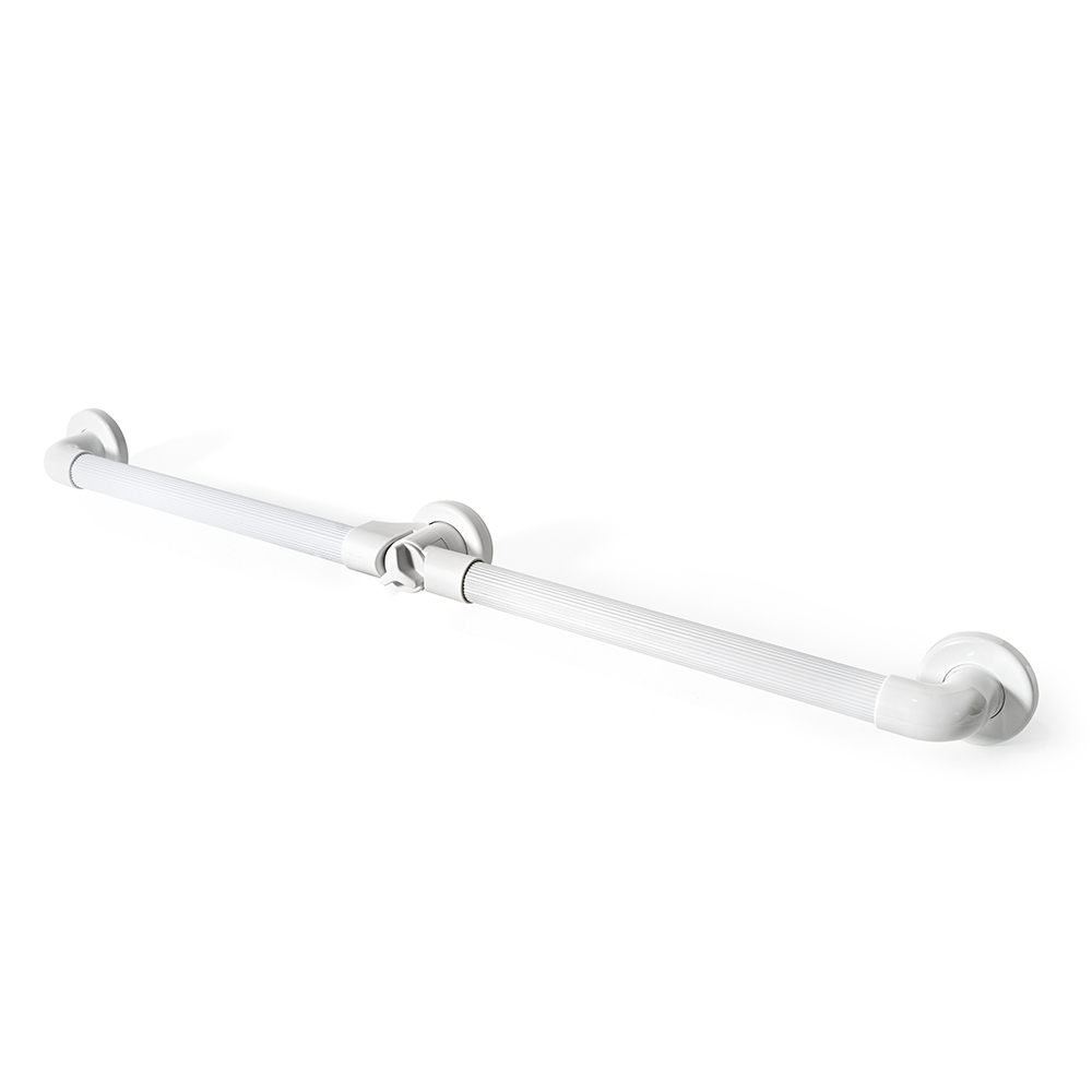 Поручень выполнен из гигиенического ударопрочного пластика. Выдерживает нагрузку до 115 кг. Крепеж идет в комплекте.