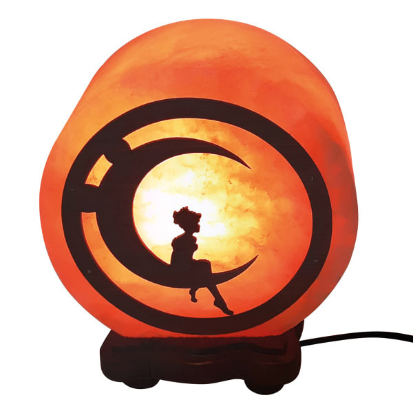 Декоративная соляная лампа с деревянной панелью и художественным рисунком «Мальчик на луне».